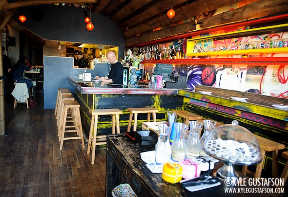 BYT – The interior is painstakingly, purposefully kitschy, in a way that it almost looks like the editors of Giant Robot came in and picked out everything from the designer toys to the graffiti on the wall.