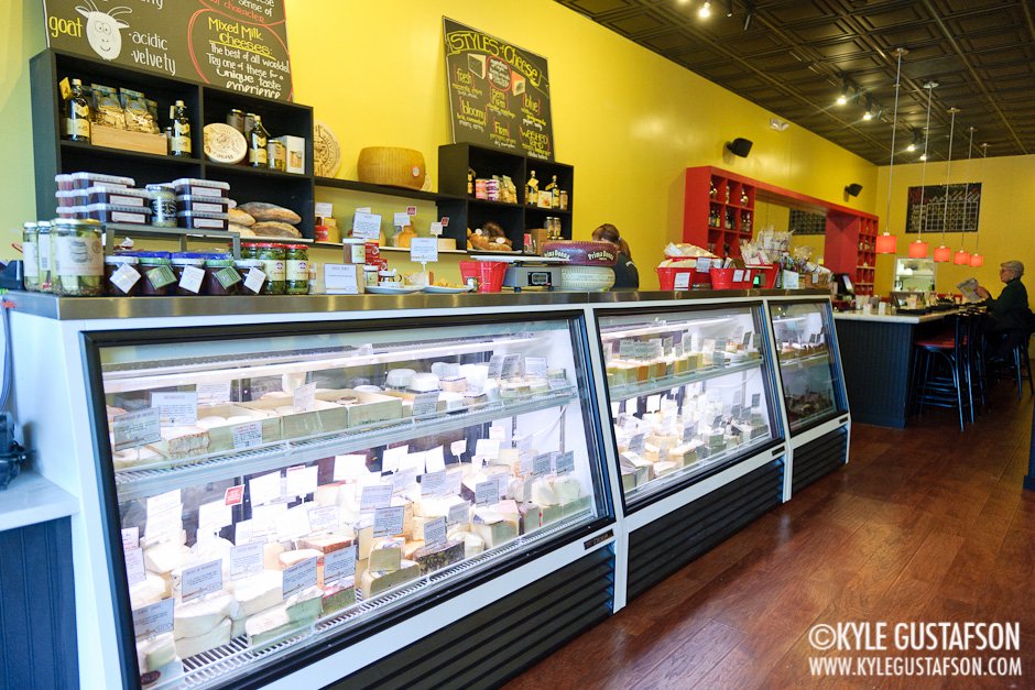 - The cheese selection and a view of the bar.
