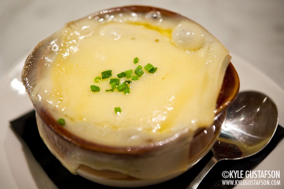 - French onion soup with Gruyère.