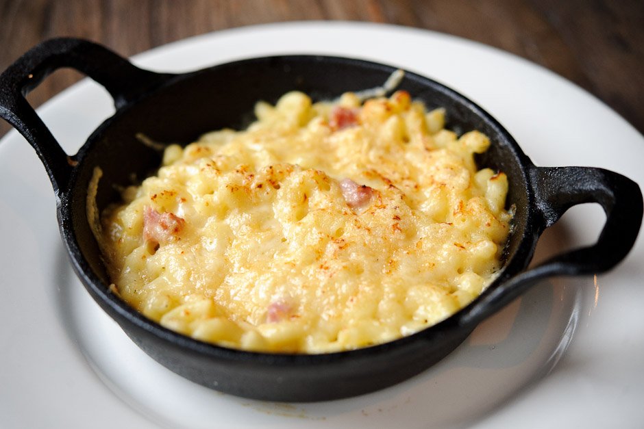 - Mac and cheese with smoked ham.