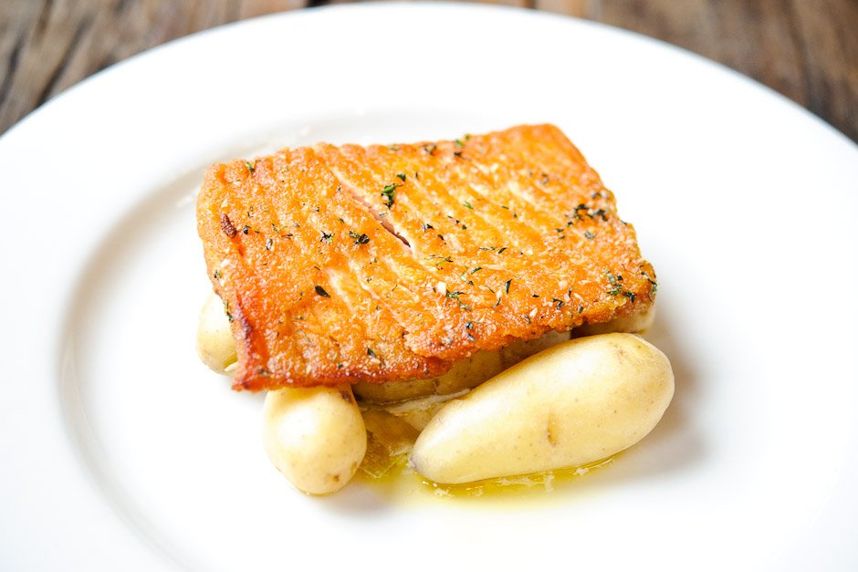 - Salmon with leeks and potatoes.
