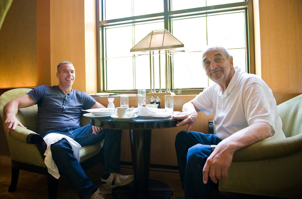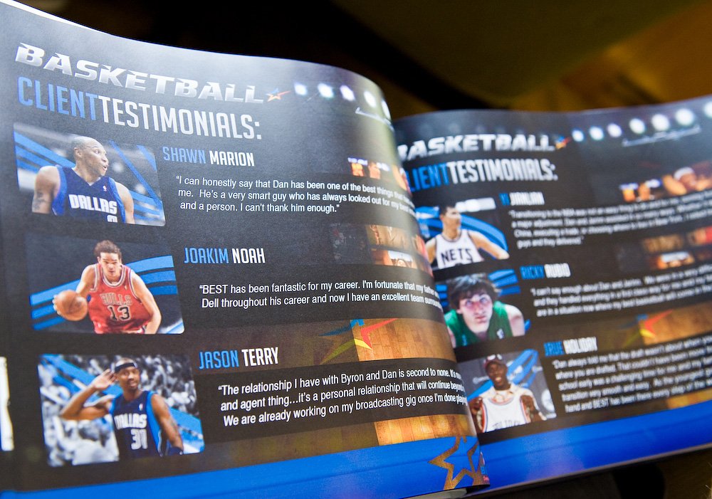 Shooting this was a bit of a challenge, but luckily Henry was with me most of the day so we constantly talked about how he wanted to frame certain scenes and what he wanted from the photos. Luckily for me, Fegan wasn’t big on email, preferring the phone and hard copies of everything, giving me photo options other than “powerful agent staring at his phone.” Fegan also had a small team with him, so getting shots of him interacting with them (including former Bullet Mitchell Butler using one of the first iPads I had seen in real life) resulted in some good material. Fegan also showed us some of the marketing material he used during contract negotiations for his clients (see above).