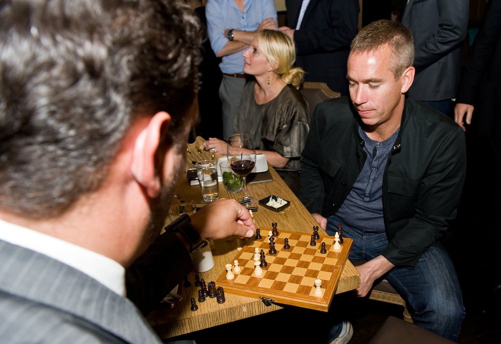 After all the work in the hotel, the actual draft was a bit of a breeze. I finally got to meet John Wall and snagged a shot of him with his family (top photo) and just generally enjoyed having a media pass to an event I used to buy tickets to just so I could sit in the crowd and boo whoever the Knicks drafted. Fegan was nice enough to invite me to the post draft celebration at a swanky restaurant downtown so after I filed my last photos from the first round, I grabbed my camera and went down there for a bit. After a few drinks and some food, I got what I thought was a throwaway shot of Fegan playing chess with Sandro Varejao (Yes, Anderson’s brother). I happened to mention it when I called Henry to sign off for the night. He almost jumped through the phone. Fegan had given him an amazing quote that talked about his overall approach as an agent and how it related to chess and Henry thought that photo would really tie the piece together. So I went back to the draft (the second round was still going on) and filed a few more photos and finally called it a night. Total win. Be sure to read Henry’s piece on True Hoop for the full recap of the day.